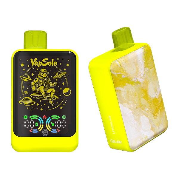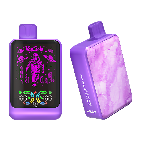 The Galaxy e-cigarette features a rectangular design with modern matte elements. It has a large front display and
